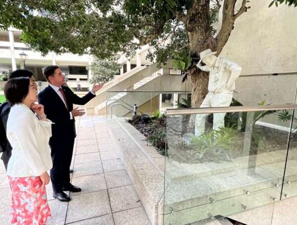 また、会談後に州議会に展示されている、1988年ブリスベン万博で飾られていた、オーストラリアの労働者を象徴する像について説明を受けました。